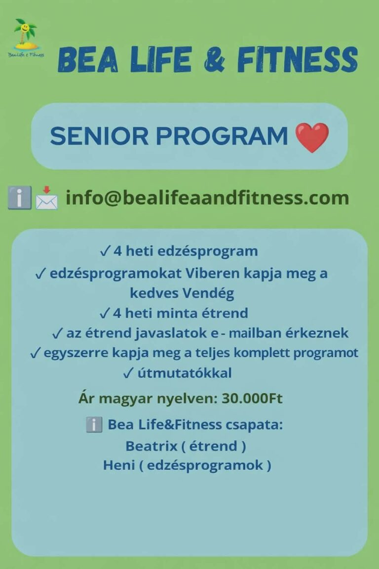 ❤️ 4 hetes senior program – mozgás örömmel, saját tempóban Szeretnél aktívabb, energikusabb lenni, és jobban érezni magad a mindennapokban? Ez a program neked szól! 🌿 Egyszerűen követhető, kíméletes gyakorlatokat kapsz, amelyeket kényelmesen, otthon is elvégezhetsz.